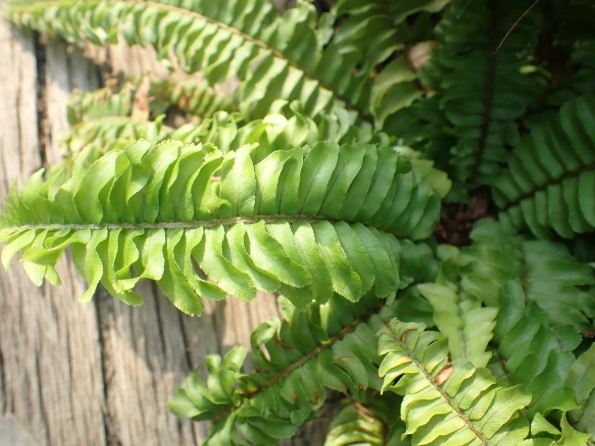 波士頓蕨的模樣真的很難認錯。它的葉子(蕨類的叫「營養葉」或「羽片」)是那種細細長長、一根主梗(葉軸)兩邊長滿小葉片(小羽片)的「羽狀複葉」,一整片看起來就像漂亮的羽毛。小羽片邊緣有點波浪狀,摸起來很柔軟,不是硬邦邦的那種。新長出來的小葉子初期是捲捲的,稱為「幼葉捲旋」,慢慢才會舒展開來,這過程看著很有趣。