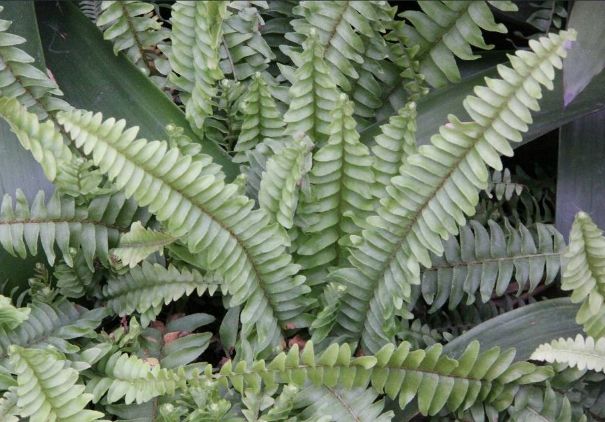 對喔,別以為波士頓蕨就只有一種樣子。它其實是「高大腎蕨」(Nephrolepis exaltata)的一個園藝栽培變種(Cultivar),特別選育出來的,所以天生就比較適合待在我們家裡面。真正讓它在花市裡闖出名號的就是標準的「波士頓蕨」,葉片長又彎彎的,看起來就很優雅。不過園藝家們可沒閒著,又陸續培育出好多不同個性的兄弟姊妹: