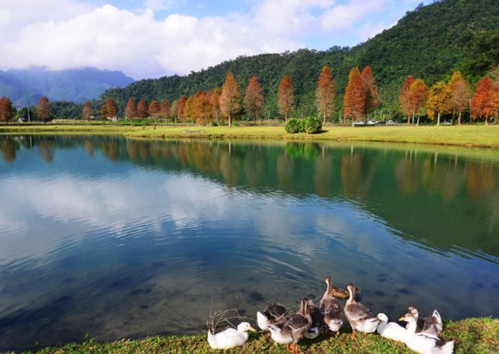 - 介紹: 因偶像劇《下一站,幸福》中"花田村"場景而爆紅的美麗埤塘。山巒環抱,碧綠湖水,免費。環湖步道輕鬆愜意,湖中有座九曲橋連通小島涼亭,景色如畫。湖畔有幾家景觀咖啡廳可用餐休憩。適合散步放鬆。