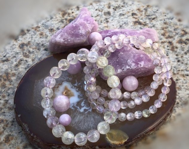 - 綠螢石(Green Fluorite): 幫助清理心輪的堵塞,讓紫鋰輝的能量更順暢進入。