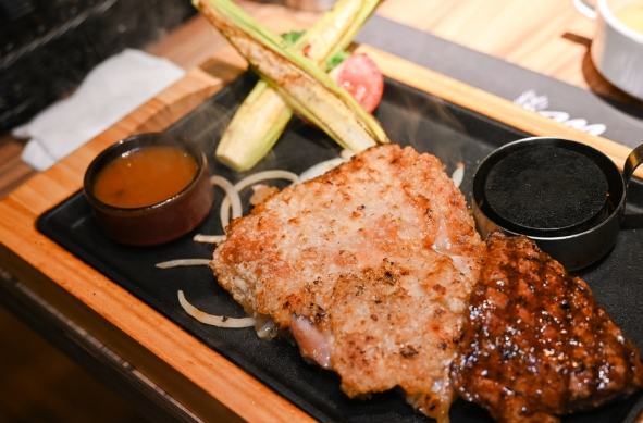 - 介紹: 跟米塔定位類似,也是主打平價鐵板牛排。我覺得兩家口味上各有擁護者。鐵火牛排的醬汁選擇(蘑菇、黑胡椒、雙醬)風味略有不同。他們有時會主打 「超大盎司」 的牛排,滿足大胃王。整體配餐(湯、飲料、餐包)大同小異。