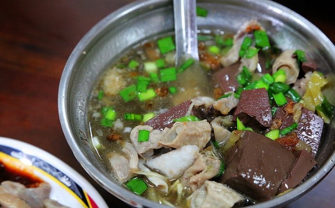 - 升級版:配一碗綜合湯。 乾麵配熱湯是王道!新營豆菜麵攤旁,通常會有一鍋滾燙的「綜合湯」(豬血湯、腸子湯、魚丸湯、貢丸湯等變化)。點一碗料多實在的綜合湯(豬血、小腸、隔間肉等),湯頭清澈鮮甜(通常是豬大骨熬成),配著清爽的豆菜麵,一乾一濕、一濃一淡,完美平衡。尤其清晨微涼時來一套,整個人瞬間甦醒。我最愛點豬血加大腸,湯頭鮮,料又豐富。